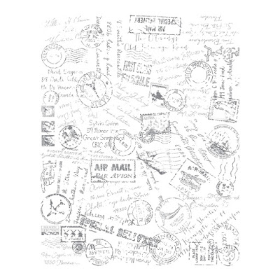 Stamp the image in black ink and then colour in small sections to highlight focal points. You might choose to colour the Air Mail Pavilion part of the Post Script background stamp in blue (Pacific Point perhaps) to mimic our Airmail stickers.