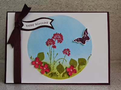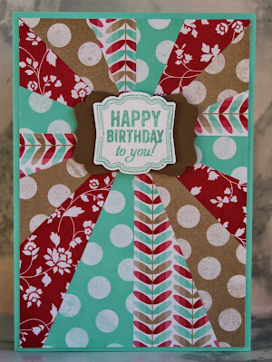 One of my other favourite retiring products is the Label Love stamp set and its matching punch - the Artisan Label punch. Here is a sunburst card I made a while back using the birthday stamp from this set.